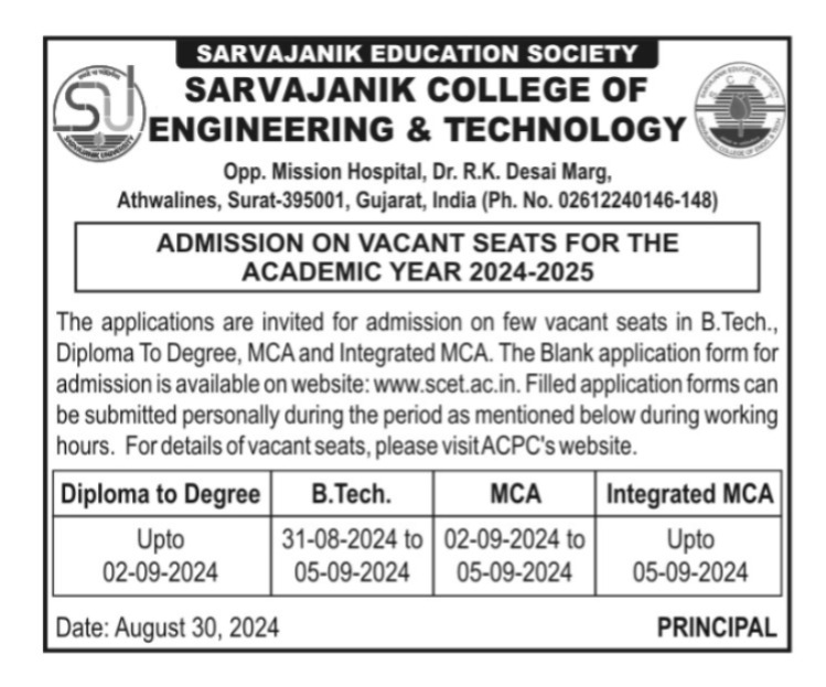 Application Form for Admission to Semester–III (Second Year) of Respective Degree Engineering Courses for Diploma Holders (DtoD) on vacant seats