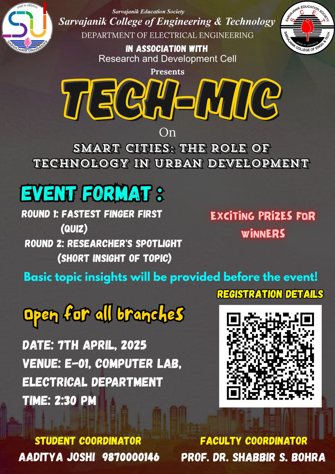 Electrical Department is going to organize TechMic on "Smart Cities: The Role of Technology in Urba